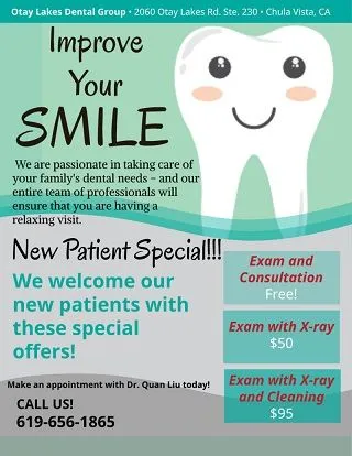 At Otay Lakes Dental Group, we understand that you have a choice when it comes to dental care providers. We are committed to providing each patient in our Chula Vista practice a great dental experience. If you are new to our practice, we invite you to use our New Patient Special and come in to meet our experienced and friendly staff.